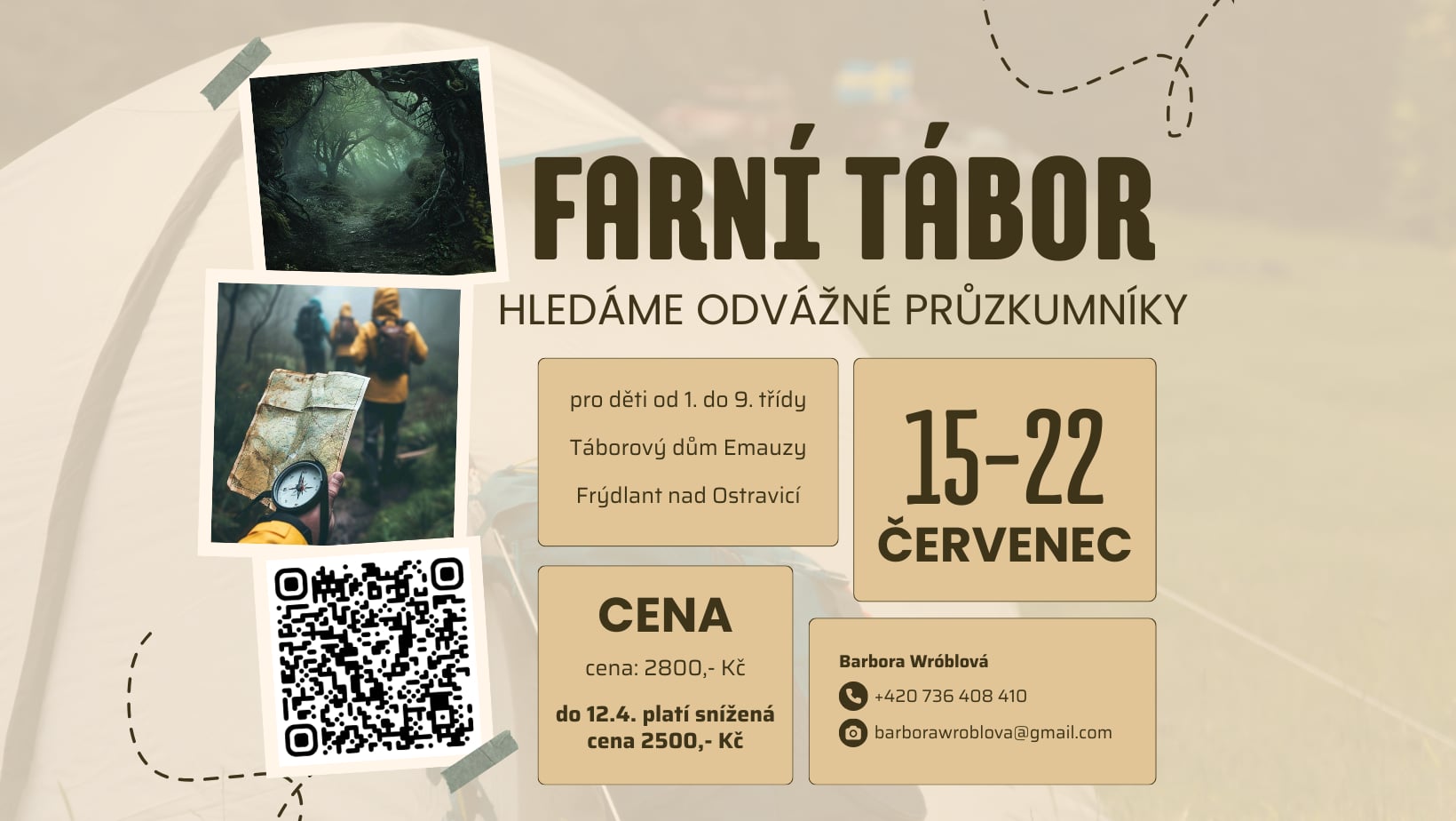 Tento týden je poslední příležitostí přihlásit děti na farní tábor za sníženou cenu. Pro přihlášené do 12. dubna platí sleva 300 Kč / dítě. Více informací najdete přímo v události Farní tábor.